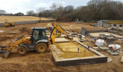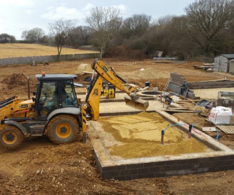 Initial blockwork and installation of ground source heating.