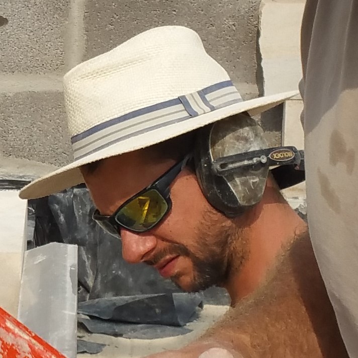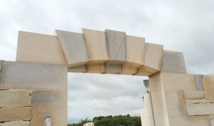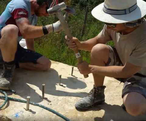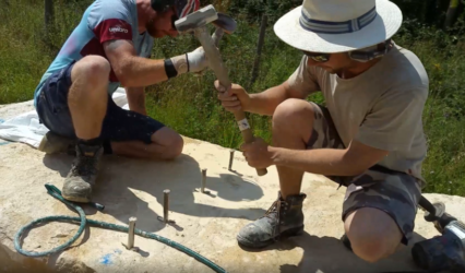 Technique of splitting large blocks of stone to be used in new build project.